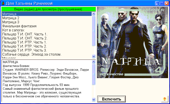 "Матрица" , "Матрица 2" , "Матрица 3"